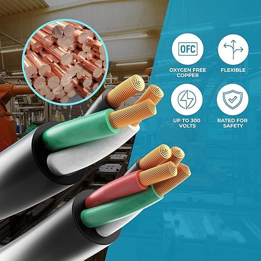 • Enhanced Conductivity: The 10 Gauge 3-Conductor OFC cable is constructed with stranded pure copper conductors; OFC wiring delivers superior conductivity; allowing it to handle larger currents with ease; Additionally OFC cable exhibits significantly higher corrosion resistance and improved heat dissipation; Flame retardant grade V0