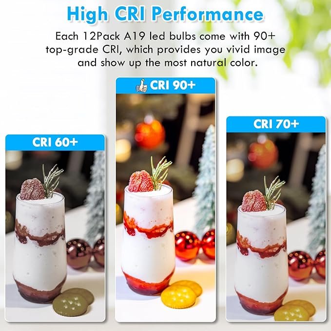 • 1600LM Super Bright 5000K Daylight White-Our 100 watt equivalent led light bulbs emit 1600lumens ultra bright lighting with more than 90+ Color Rendering Index(CRI), which shows up you rather energetic 5000K daylight white light with beautiful and nature colors of its surroundings. This bright white led bulbs are excellent to light up your bathroom, living room, bedroom, kitchen, guest room, dining room and anywhere needs high brightness