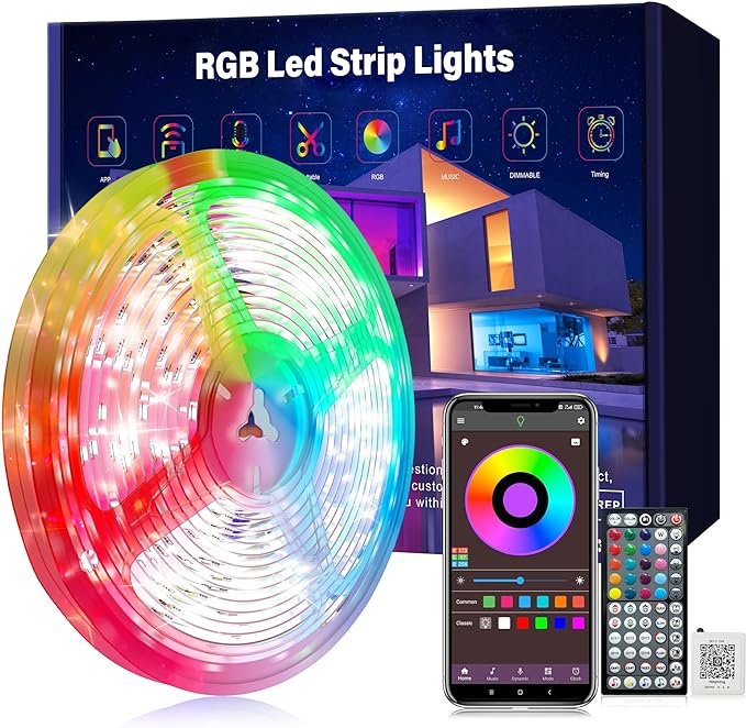 - 【Multi-use】 The led light strip with romote and app control has a lot of scene modes to create a festive atmosphere that matches your mood or activity. It is ideal for home decoration and perfect for birthday parties, Christmas, Easter, Halloween, carnival, prom, weddings, or everyday use