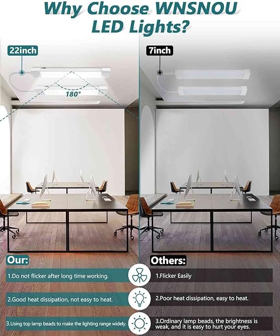 • Plug in light fixtures adopts high-efficiency LED, so this workbench light provides a bright 1700LM output using only 16 watts. Save up to 85% on your electricity bill by replacing fluorescent light with plug in led light bar. 5000K daylight, 180° beam angle, our plug in overhead light can illuminate the dark corners of your room.