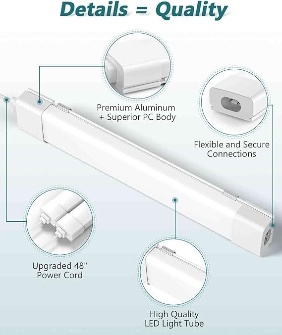 • 💡【Waterproof & Wide Application】- IP66 waterproof lights with plug in cord, this plug in overhead light can work well in wet conditions(Indoor or outdoor), It\’s an ideal tube light for living rooms, shops, workshops, work benches, kitchens, bedrooms, offices, laundry rooms, closets, barns, utility rooms, storage rooms, under cabinets, basements, etc.