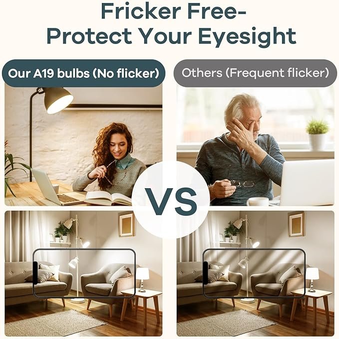 - Promised Quality & Eye Protection — These A19 light bulbs 60 watts have passed UL Listed and FCC certification to guarantee great quality. Emitting stable, non-flickering light and zero harsh glares prevent eye fatigue and protect your family\’s eyesight effectively. No UV or IR Radiation. You can use Linkind products without any worry.